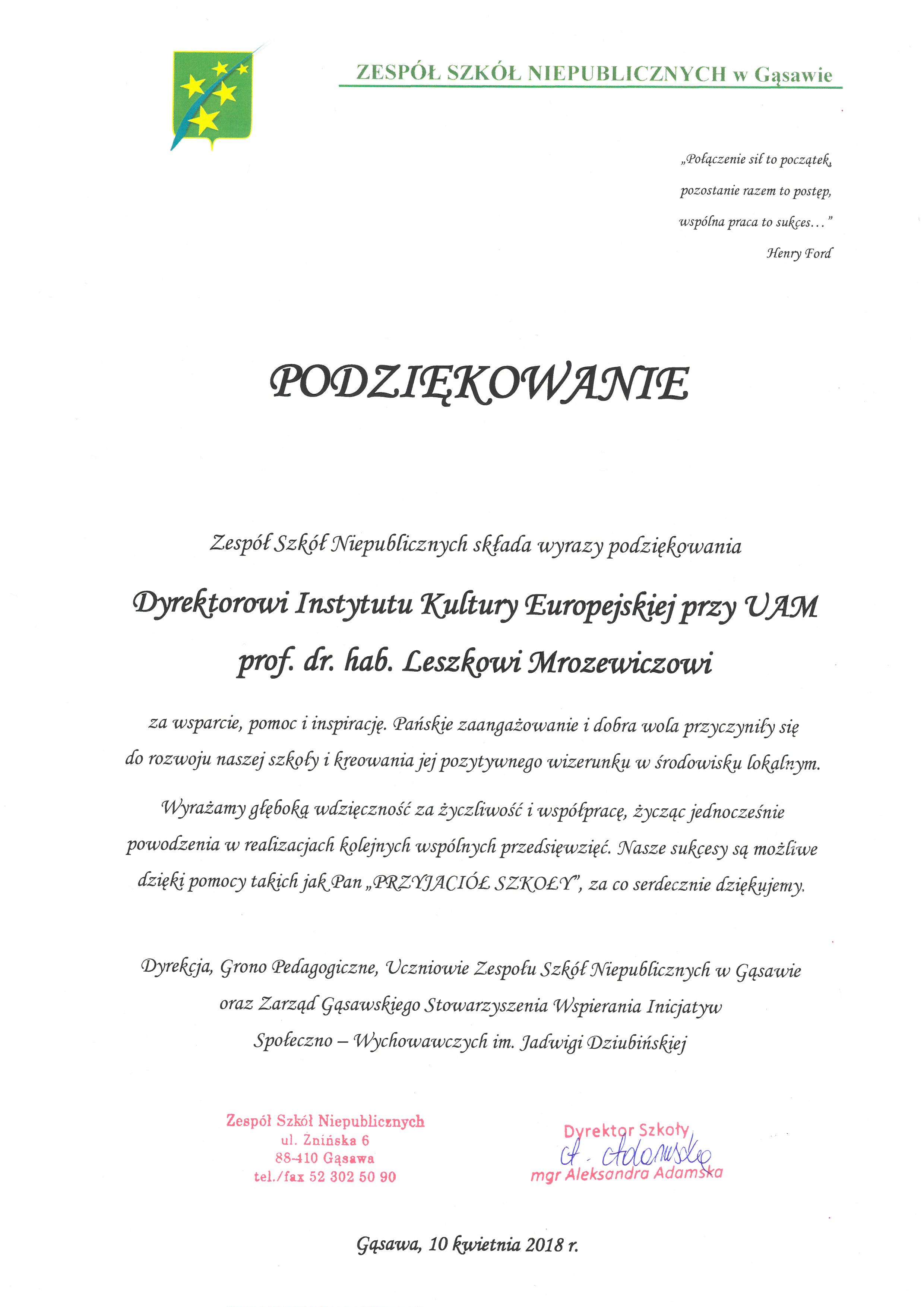 Porfesor Leszek Mrozewicz przyjacielem Zespołu Szkół Niepublicznych w Gąsawie 12 kwietnia 201812 kwietnia 2018 przez ewagbur